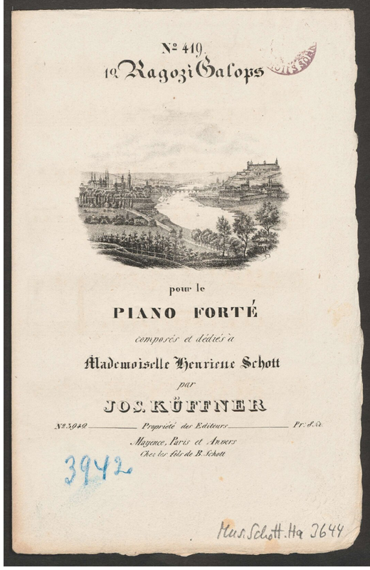 | First Publication. | 1834 – Mainz: Schott Monatsbericht (1834), p.60 (Valses fav. No. 421 bis 424. 426. 427 m. Vign.) Monatsbericht (1834), p.79 (Valses fav. No. 419, 420, 425, 429, 430, m. Vign.) |