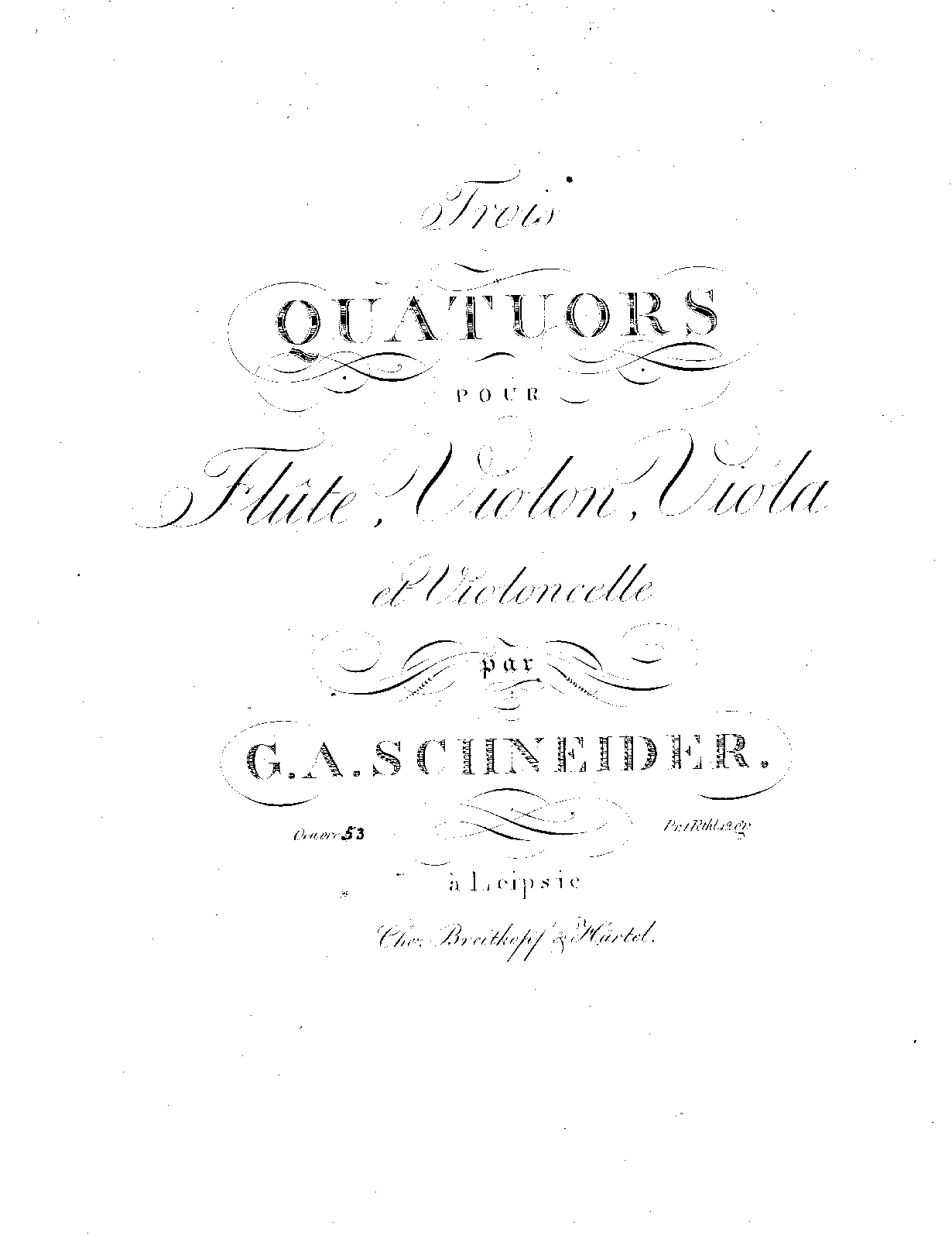 | Genre Categories | Quartets; For flute, violin, viola, cello; Scores featuring the flute; |