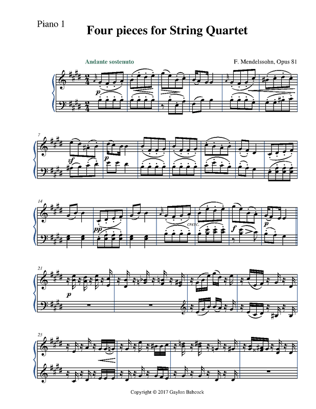 Quatre pièces pour quatuor à cordes; Four Pieces for String Quartet; 弦楽四重奏のための4つの小品 (メンデルスゾーン)