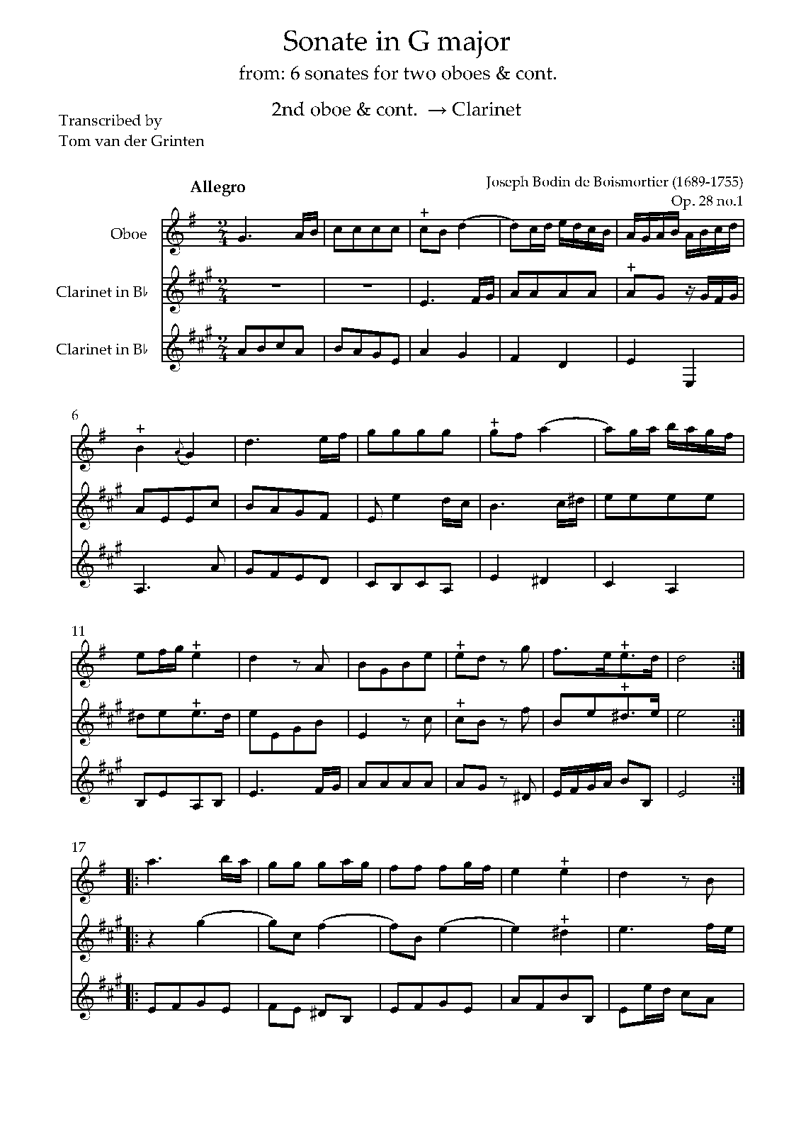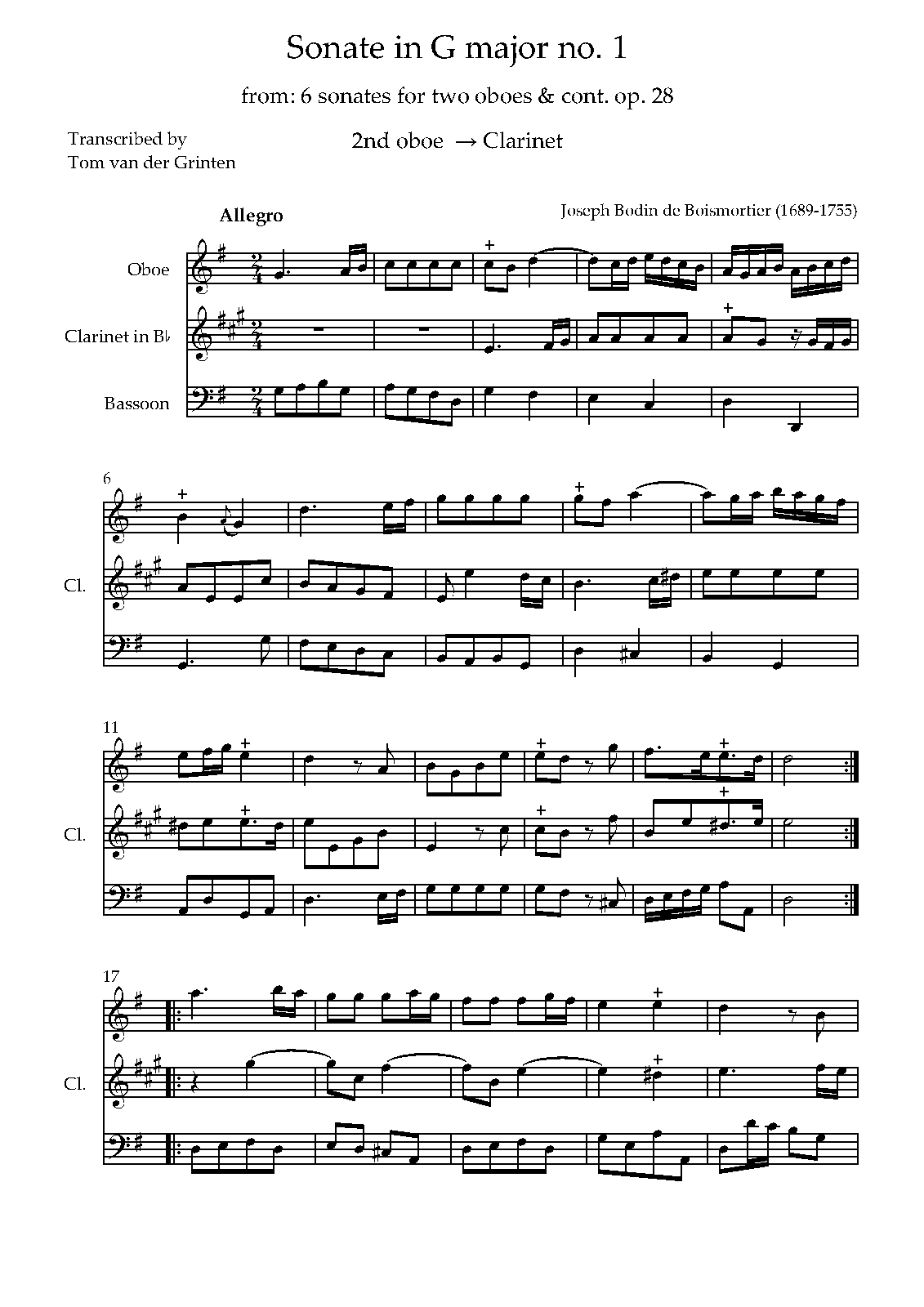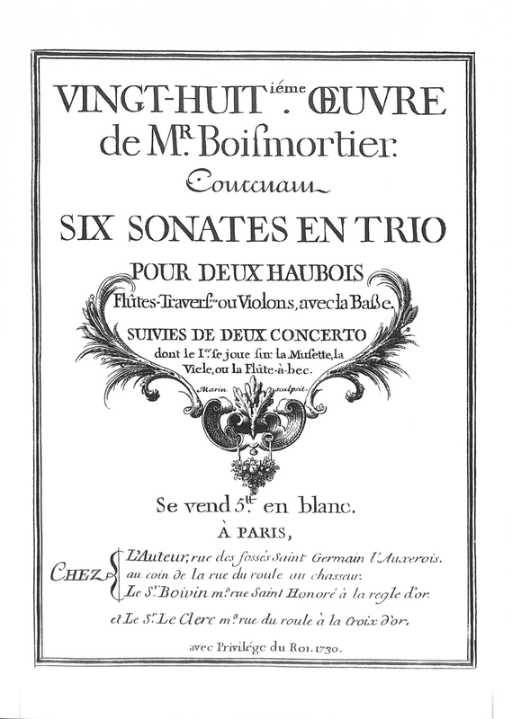 | Alternative. Title | Vingt-huitième oeuvre de Mr. Boismortier. Contenant six sonates en trio pour deux haubois, flûtes-traversières ou violons avec la basse, suivies de deux concerto dont le Ier se joue sur la musette, la vièle ou la flûte-à-bec. |