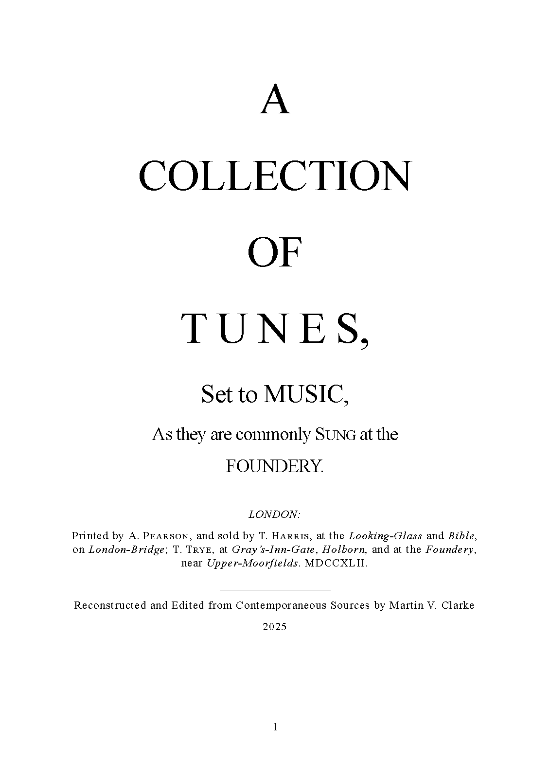 ⇒ 42 more: 2. Fetter Lane • 3. The Resignation • 4. Jericho • 5. Bromswick • 6. St Athol • 7. Fonmon • 8. Savannah • 9. London New • 10. Herrnhuth • 11. Penmark • 12. Salisbury • 13. Frankfort • 14. Love Feast • 15. St Mary • 16. St John • 17. Bedford • 18. Bexley • 19. Marienborn • 20. Bristol • 21. Wenwo • 22. St Matthew • 23. Cripplegate • 24. Bromsgrove • 25. Angel's Hymn • 26. Cannon • 27. First German • 28. Leipsick • 29. Jera • 30. Second German • 31. Crucifixion • 32. Islington • 33. Tans'ur • 34. Clark • 35. Cardiff • 36. Amsterdam • 37. Slow German • 38. Leipsick • 39. St Luke • 40. Playford • 41. Swift German • 42. The 113th Psalm • 43. Evesham