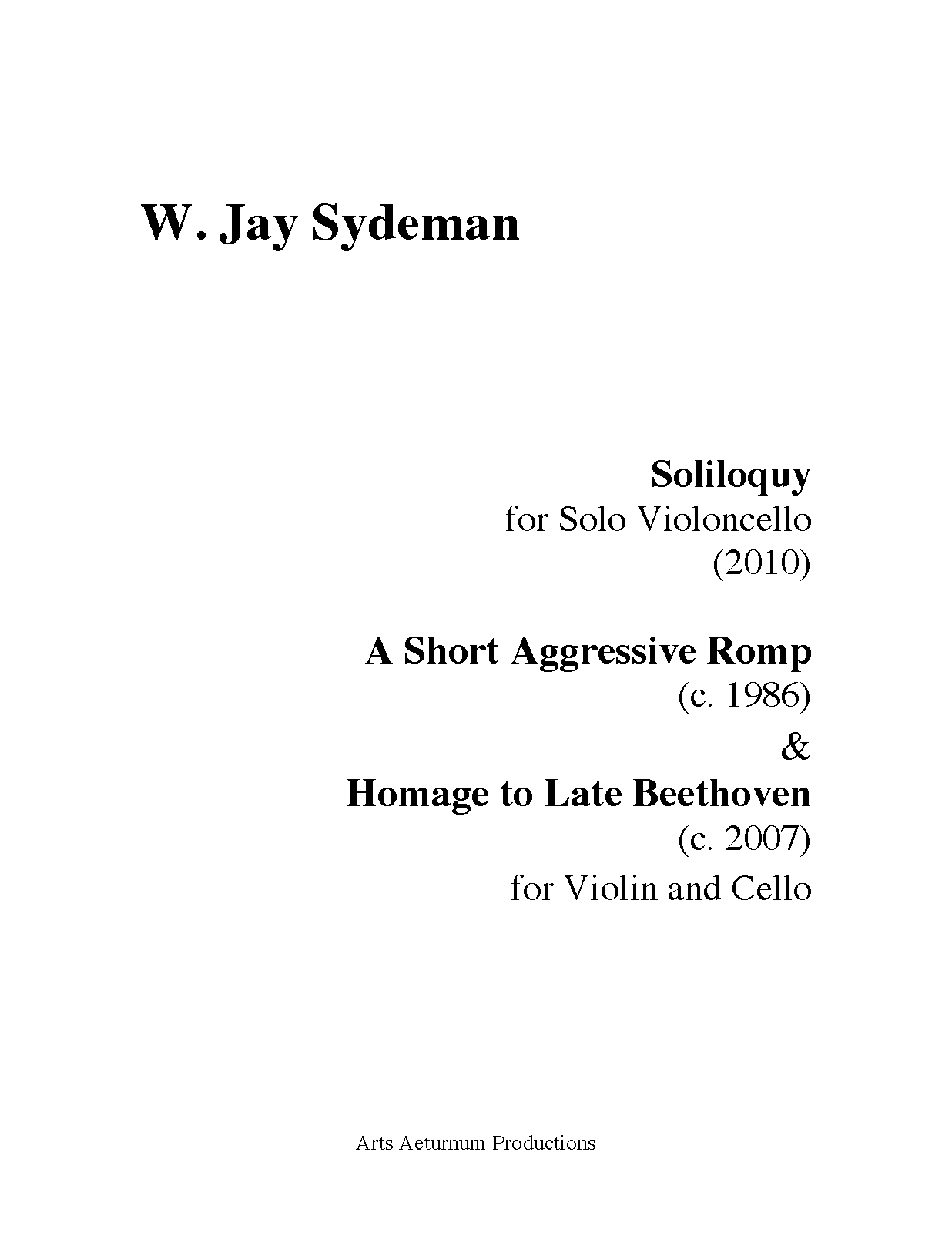 | Work Title | A Short Aggressive Romp for Violin and Cello |