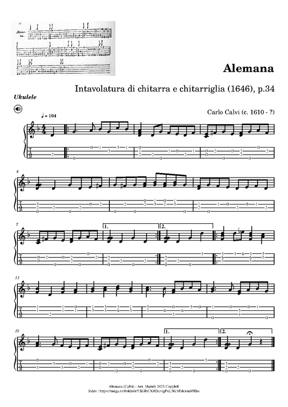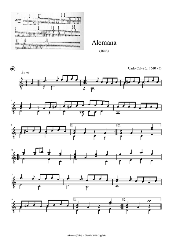 | First Publication | 1646 in Intavolatura di chitarra e chitarriglia (Calvi, Carlo) |