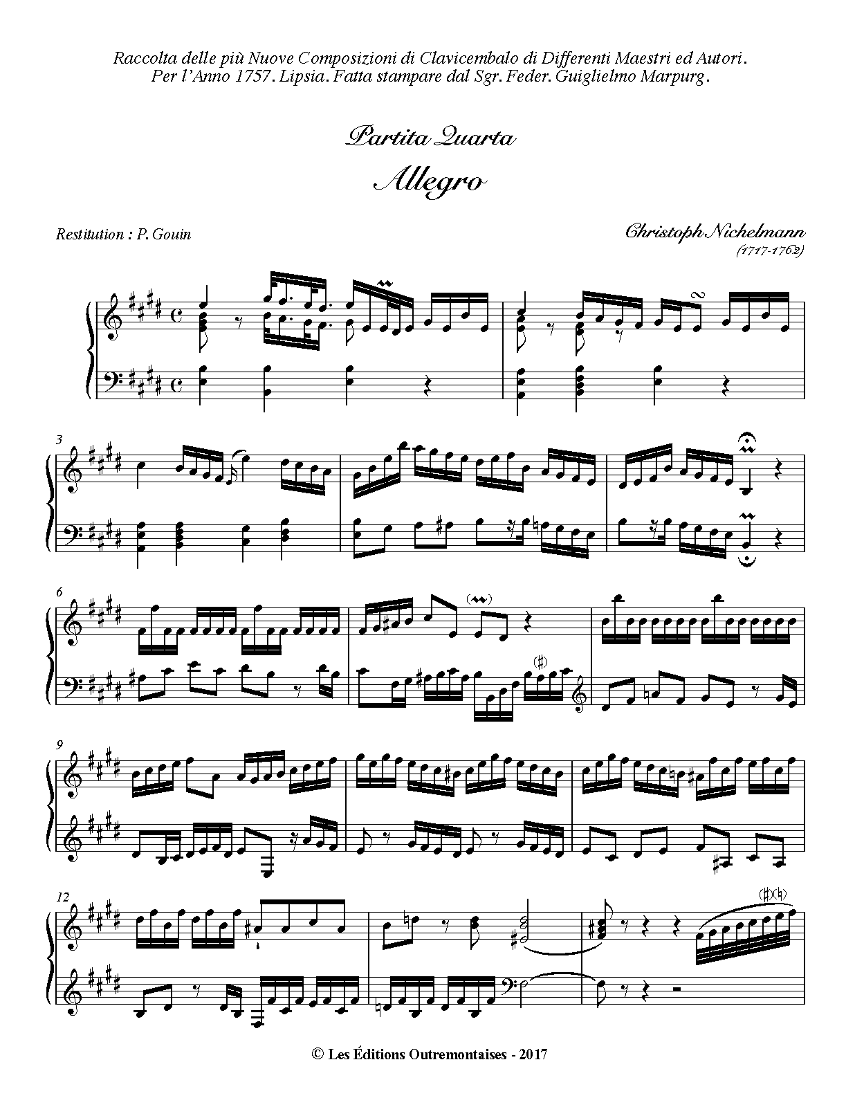 | Extra Information | Partita IV also contains 2 Menuets and a Polonoise by Kirnberger |