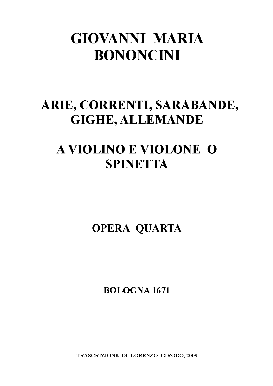 Arie, correnti, sarabande, gighe, & allemande a violino, e violone, over spinetta, con alcune intavolate per diverse accordature ... opera quarta