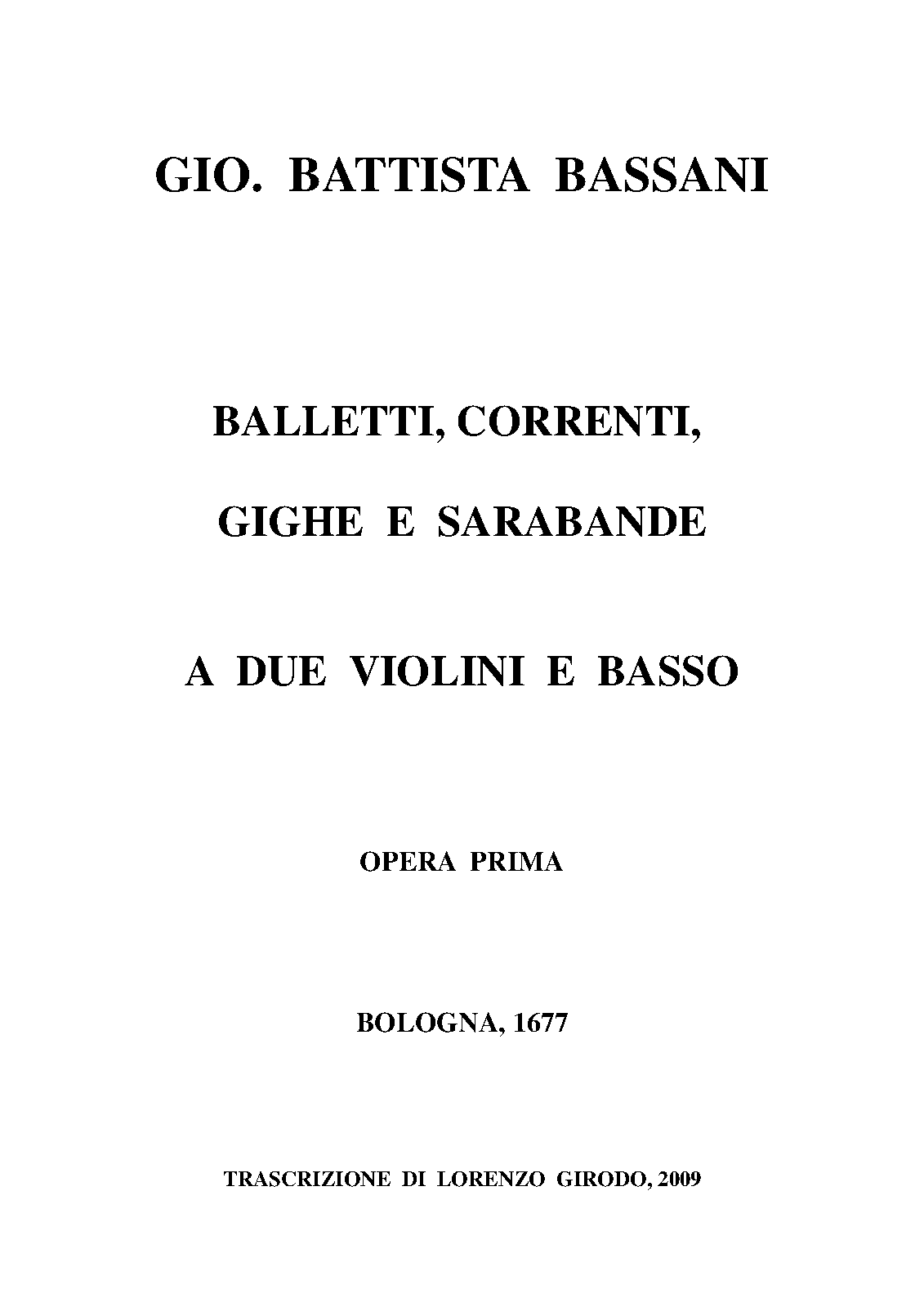 Balletti, Correnti, Gighe, e Sarabande a violino, e violone, overo spinetta, con il secondo a beneplacito; con l'aggiunta di tre canoni a 4 e 5 voci