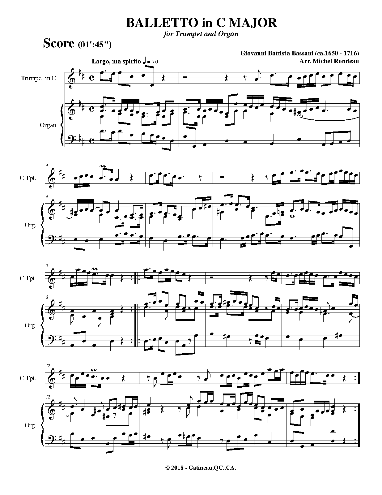 2 violins, continuo; violin, viola, continuo. second instrument ad libitum; Canons: 5 bass instruments; SATB instruments