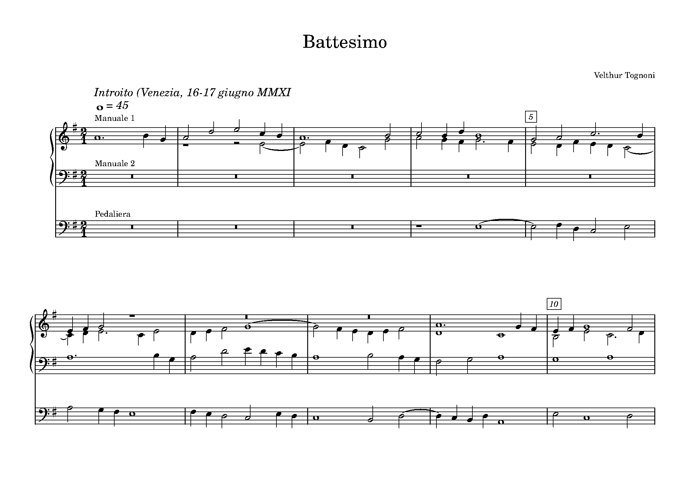 Hodie beata virgo, inizialmente scritto come brano corale in occasione del battesimo della figlia del mio migliore amico, non è mai stata eseguita per il corto tempo a disposizione. A quel brano ho poi aggiunto gli altri tre attorno al tema del battesimo. Quello è nato e resta un brano corale, ma in questa versione organistica ho mantenuto una minima traccia del testo per suggerire le eventuali scelte timbriche (voci gravi, acute, virili o femminili) e articolazioni di sezioni omoritmiche e monotestuali.