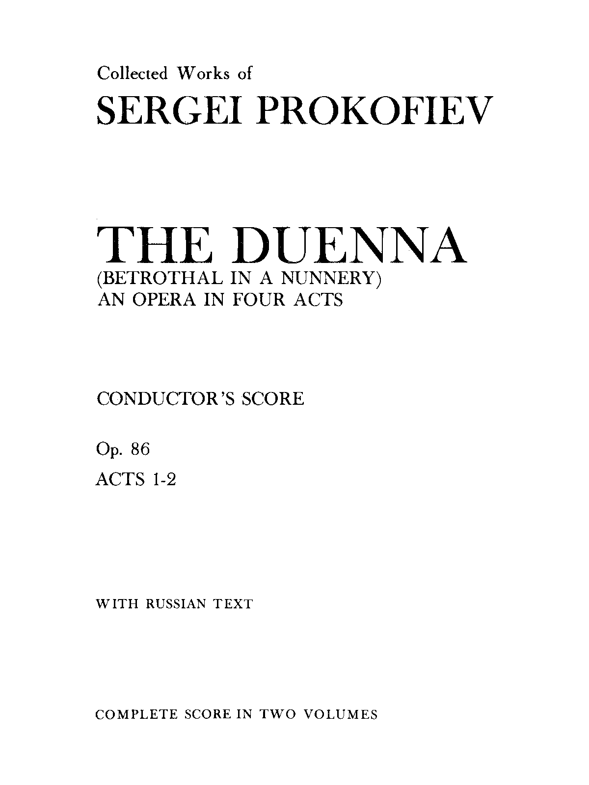 | Alternative. Title | Обручение в монастыре; Дуэнья; Obruchenie v monastyre; Duen'ia; Obrucheniye v monastïre; The Duenna; Betrothal in a Nunnery; La Dueña |