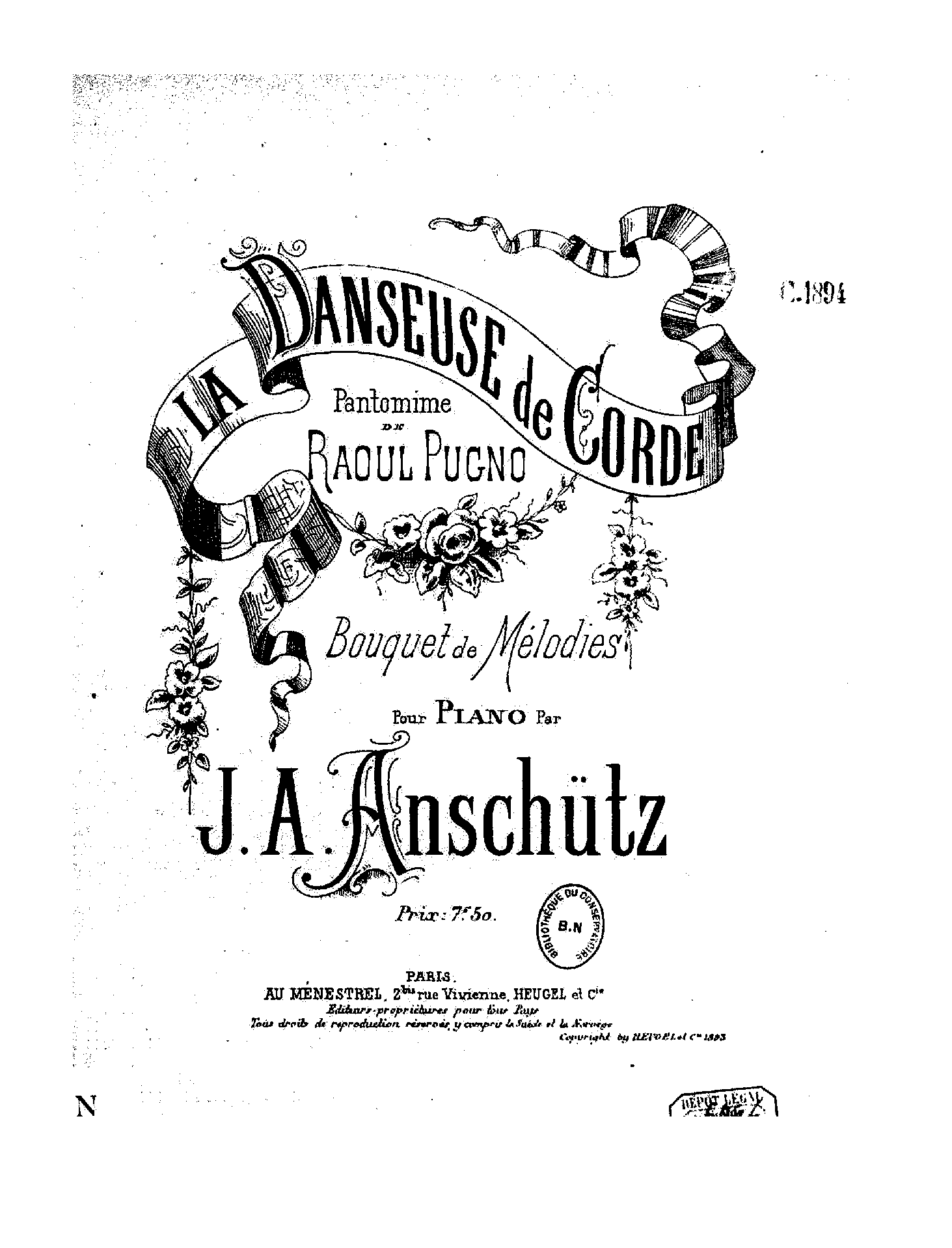 | Alternative. Title | La danseuse de corde. Pantomime de Raoul Pugno. Bouquet de mélodies. |