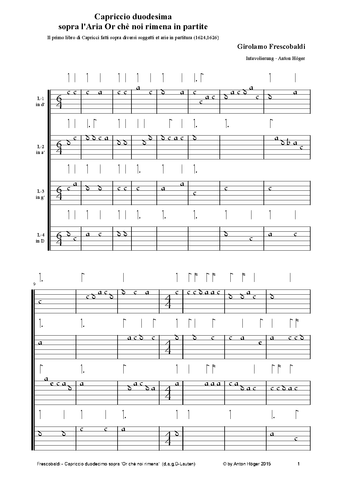 Work Title Capriccio VII sopra l'aria 'Or chè noi rimena' in partite
