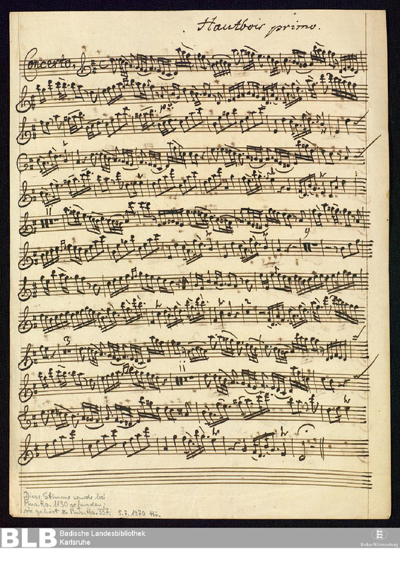 clarinet solo (in D), strings, 2 oboes, continuo