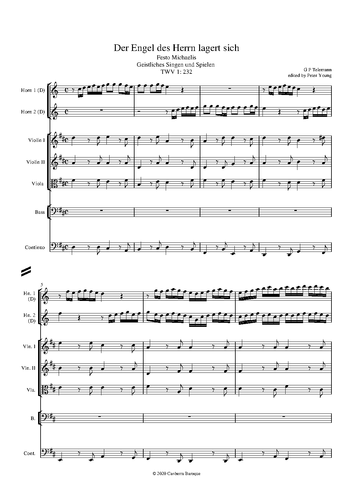 tenor, bass solos; mixed chorus (SATB), 2 horns, strings, continuo