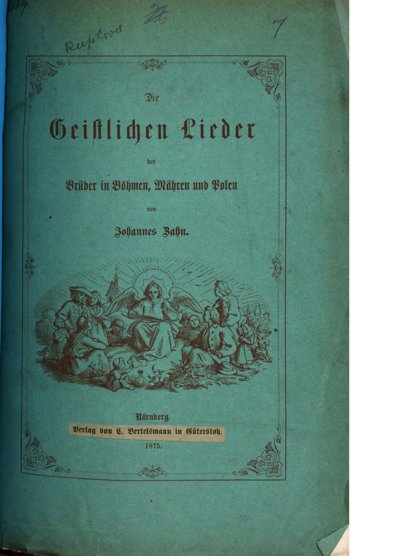 Die Geistlichen Lieder der Brüder in Böhmen, Mähren und Polen in einer Auswahl, für eine Singstimme mit Begleitung des Harmoniums oder des Klaviers eingerichtet von Johannes Zahn