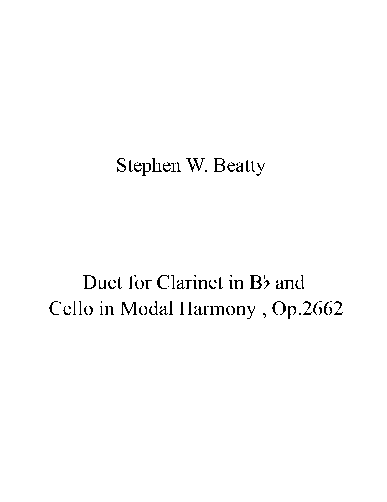 | Work Title | Duet for Clarinet in Bb and Cello in Modal Harmony |