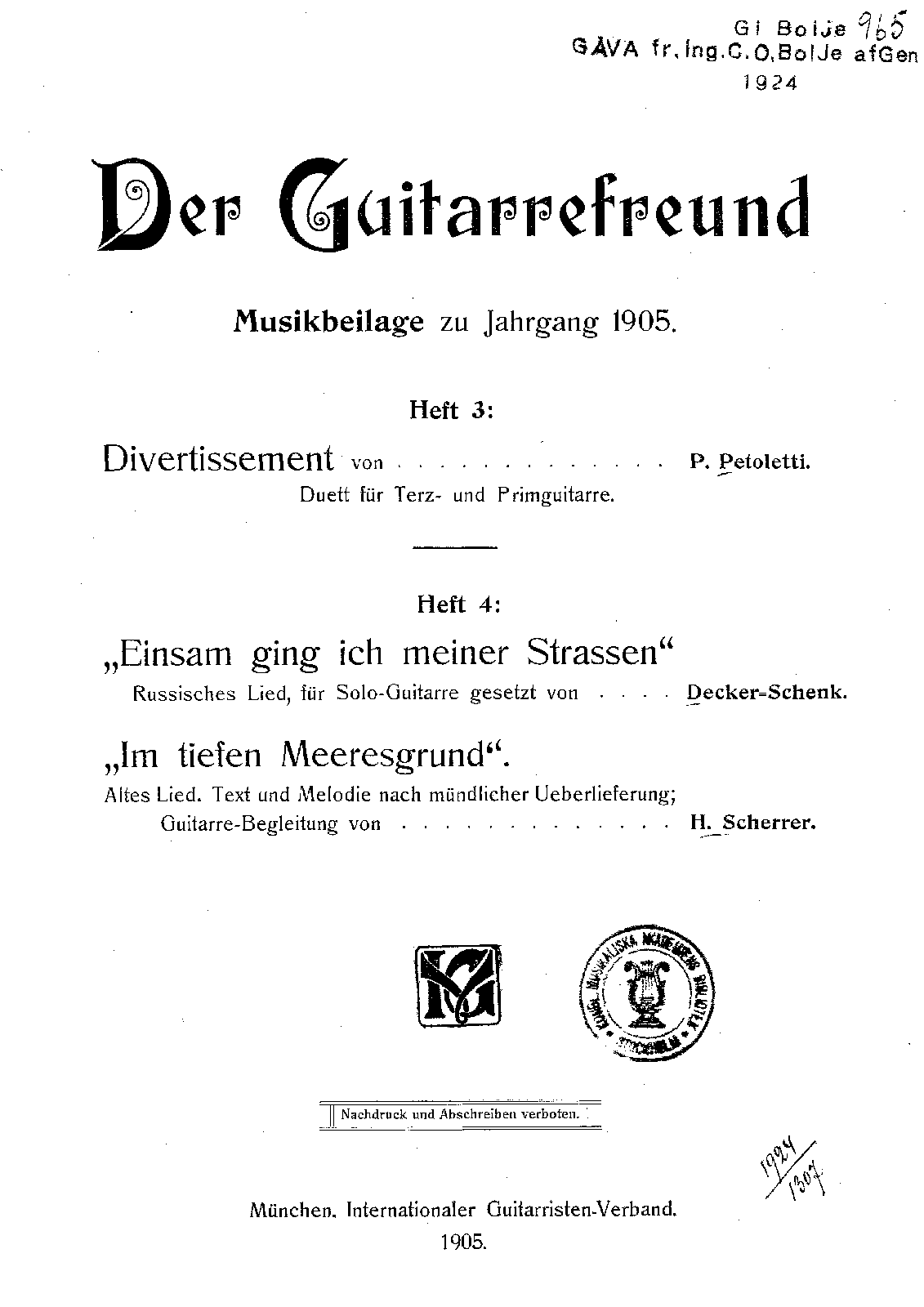| Work Title | Einsam ging ich meiner Strassen; Russisches Lied |