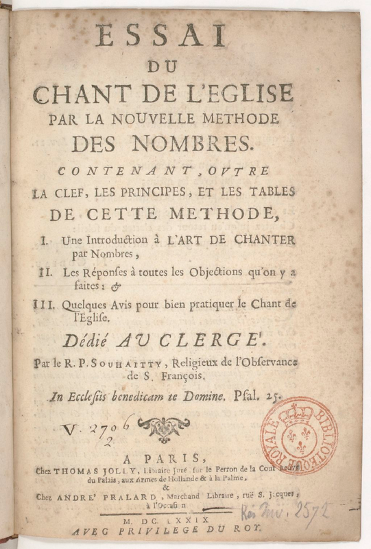 | Alternative. Title | Essai du chant de l'église par la nouvelle méthode des nombres, contenant outre la clef, les principes et les tables de cette méthode : I. Une introduction à l'art de chanter par les nombres, II. Les réponses à toutes les objections qu'on y a faites, et III. Quelques avis pour bien pratiquer le chant de l'église |