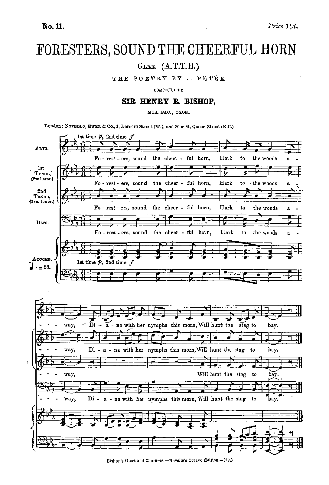 | Work Title | Foresters, Sound the Cheerful Horn |