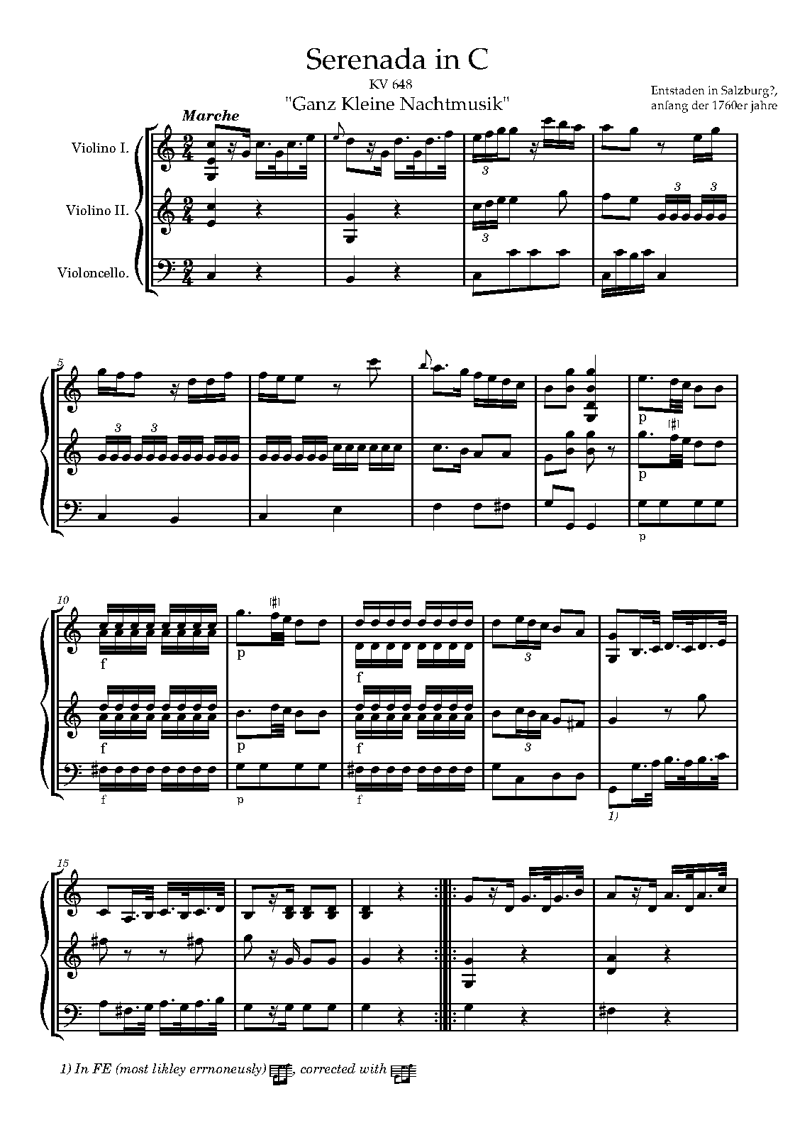KV 648; Serenate ex C; Eine ganz kleine Nachtmusik; Ganz kleine Nachtmusik, KV 648; Serenade in C-Dur KV 648; Serenade in C-Dur; KV 648 Serenade in C for 2 violins and basso; KV 648 Serenade in C; Serenade in C; 極小夜曲