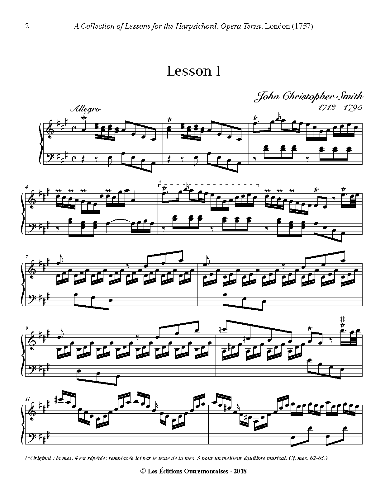 | First Publication. | 1755 in A Collection of Lessons for the Harpsichord, Op.3 (No.1) |