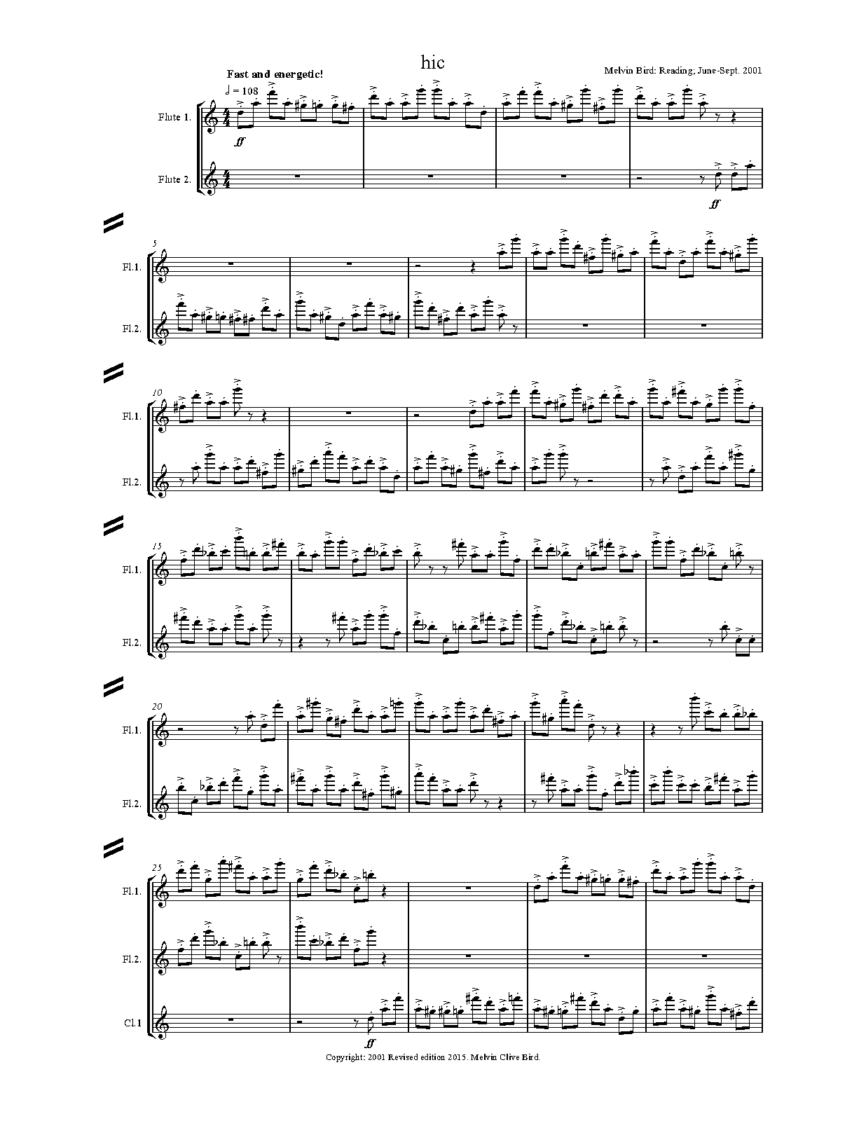 Melvin Bird has asserted his right under the Copyright, Designs and Patents Act, 1988, to be identified as the composer of this work. Please contact the composer for further information. The composer welcomes any performances and recordings. melvin.bird@hotmail.com