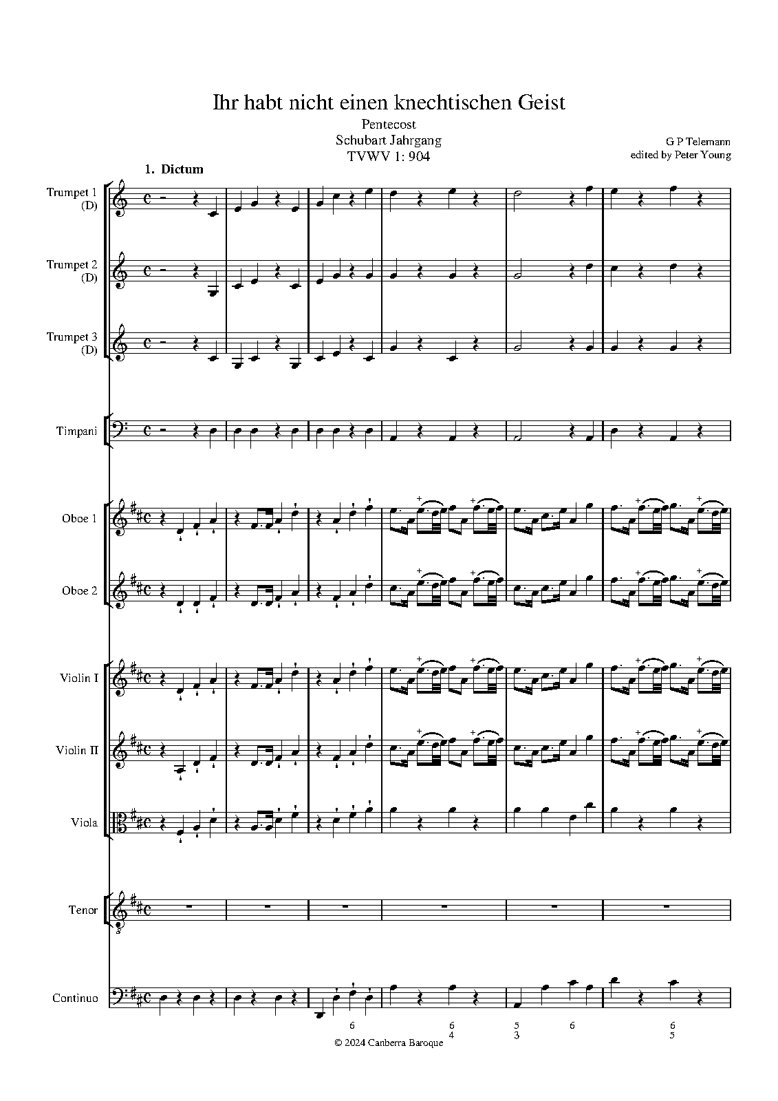 2 oboes, 3 trumpets, timpani, strings, continuo