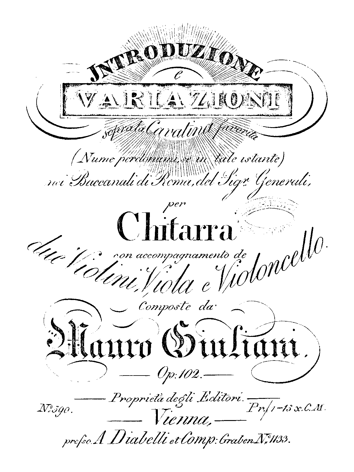 | Alternative. Title | Introduction et Variations pour la Guitare sur la Cavatine favorite 'Nume perdonami se in tale istante' , musique de Generali |