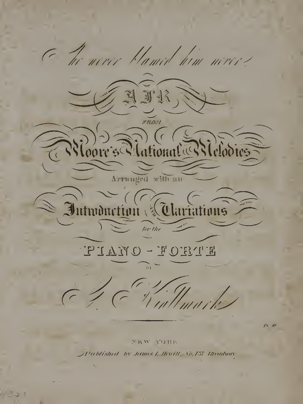 | Alternative. Title | She never blamed him never, Air from Moore's National Melodies arranged with an Introduction and Variations for the Piano-Forte |
