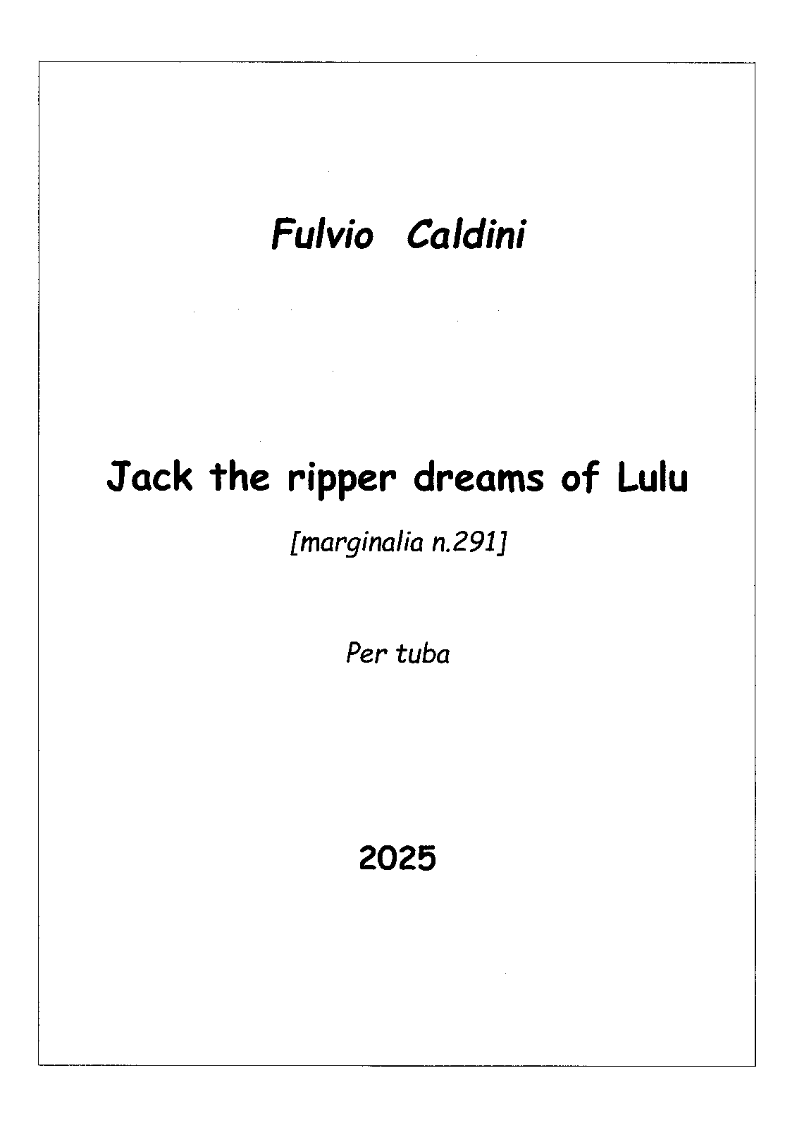 | Work Title | Jack the ripper dreams of Lulu, Marginalia No.291 |