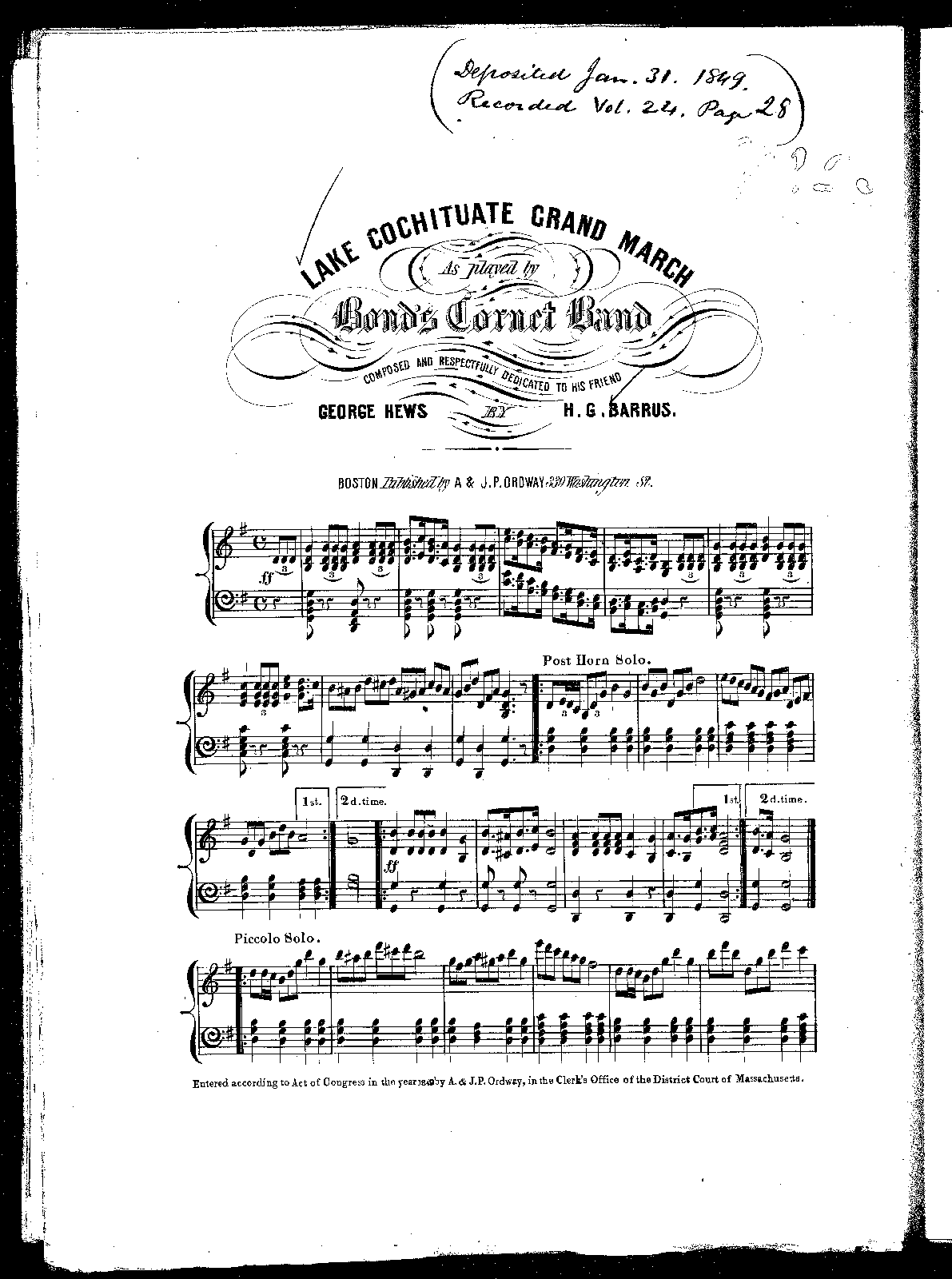 "As played by Bond's Cornet Band", so tagged for brass band as the original instrumentation.