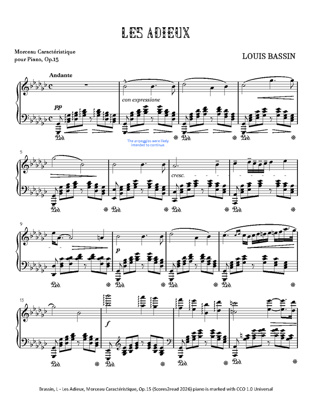 | Alternative. Title | Les Adieux, Morceau Caractéristique pour Piano, Op.15 |