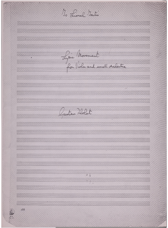 | First Performance. | 1934/03/18 - London, British Broadcasting Corporation: Lionel Tertis (viola), Adrian Boult (conductor) |
