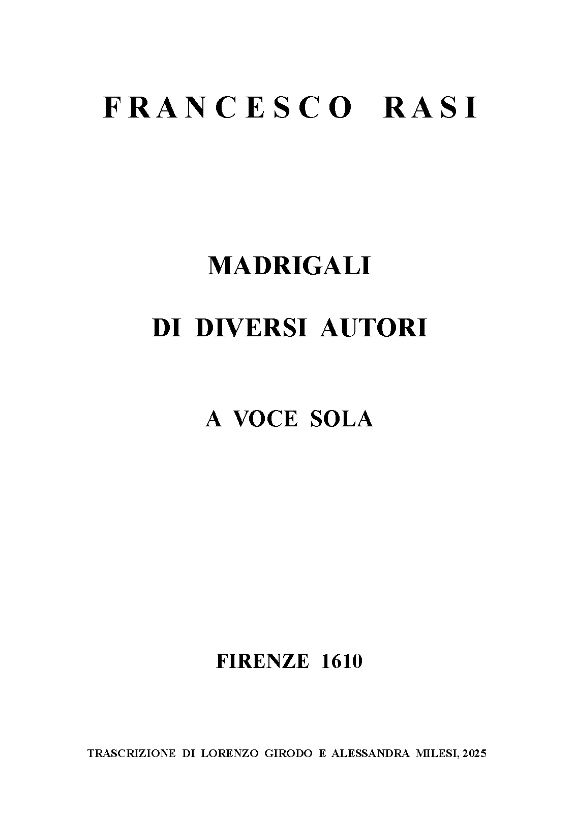 | Work Title | Madrigali di Diversi Autori a voce sola |