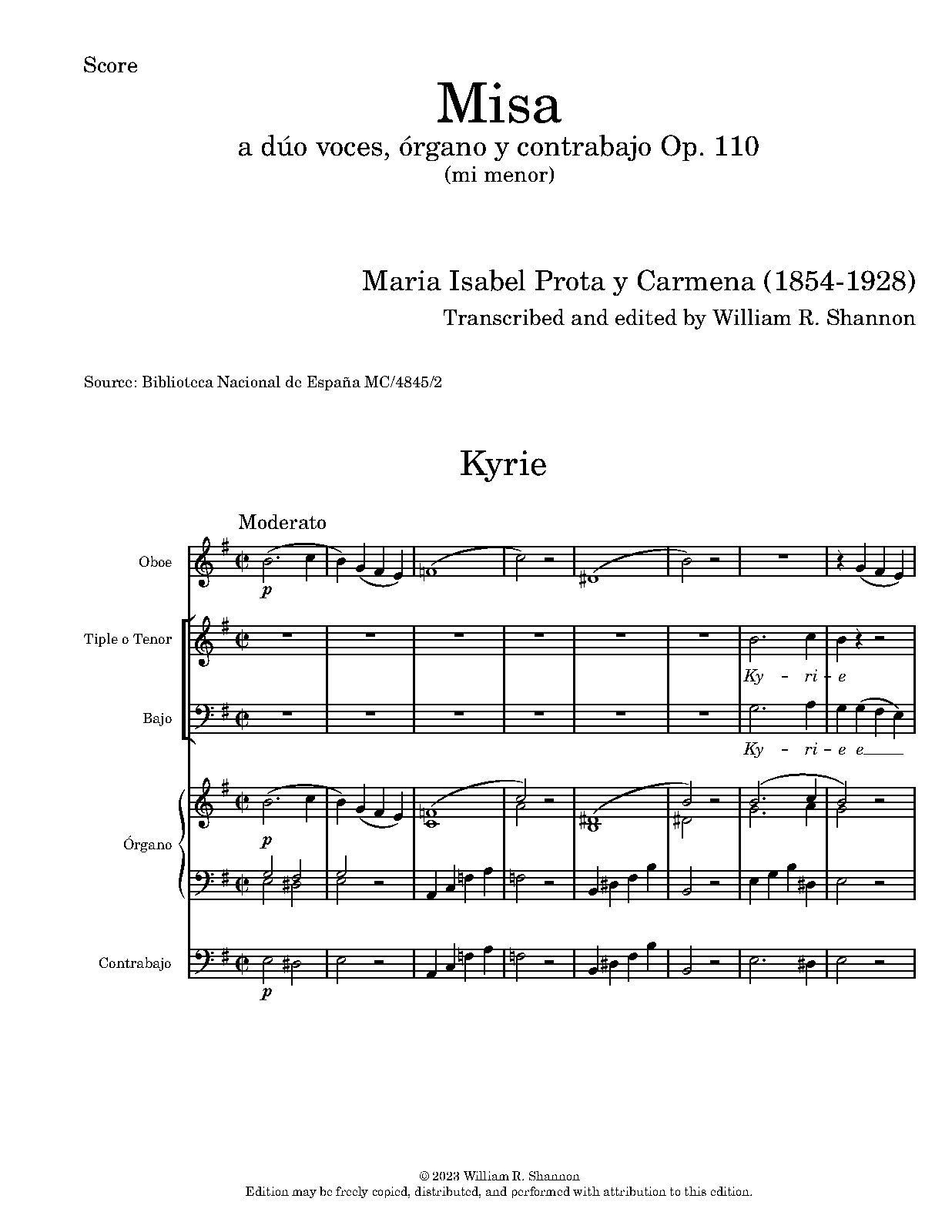 Misa a dúo voces, órgano y contrabajo