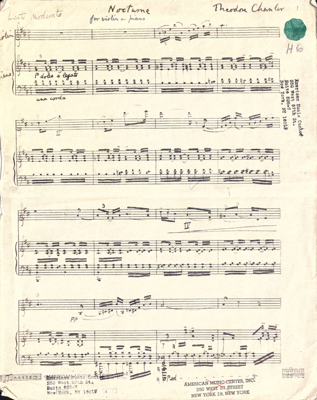 Publicly circulated by the American Music Center without a copyright notice.This work is in the public domain in the United States because it was first published before March 1, 1989, and was either first published in the United States, published in the United States within thirty days of its first publication abroad, or its author was a US citizen, and this publication occurred without a compliant copyright notice, and, if published in 1978 or later, the work did not have its copyright registered under a curing provision within five years of publication.