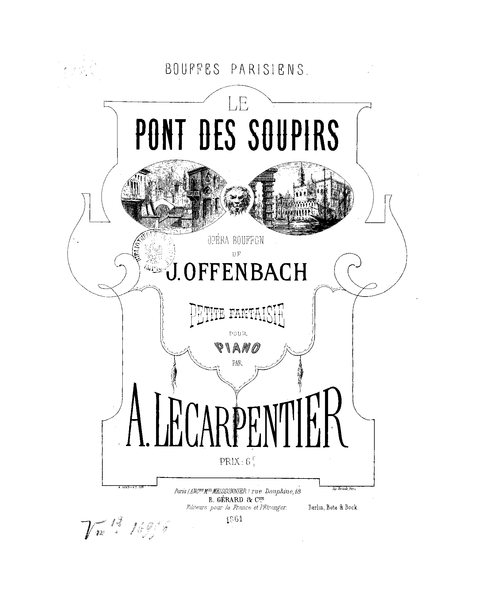Le pont des soupirs. Opéra bouffon de J. Offenbach. Petite fantaisie