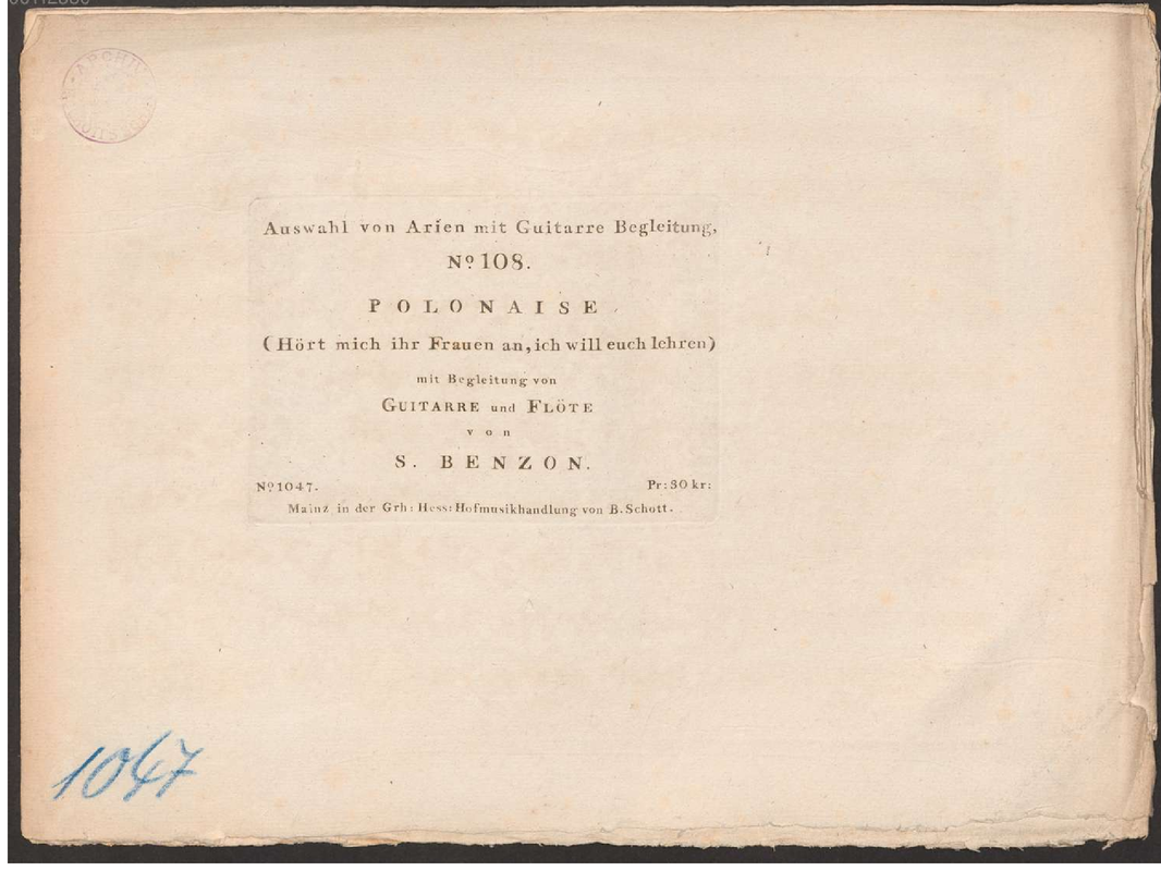 | Work Title | Polonaise "Hört mich ihr Frauen an, ich will euch lehren" mit Begleitung von Guitarre und Flöte |