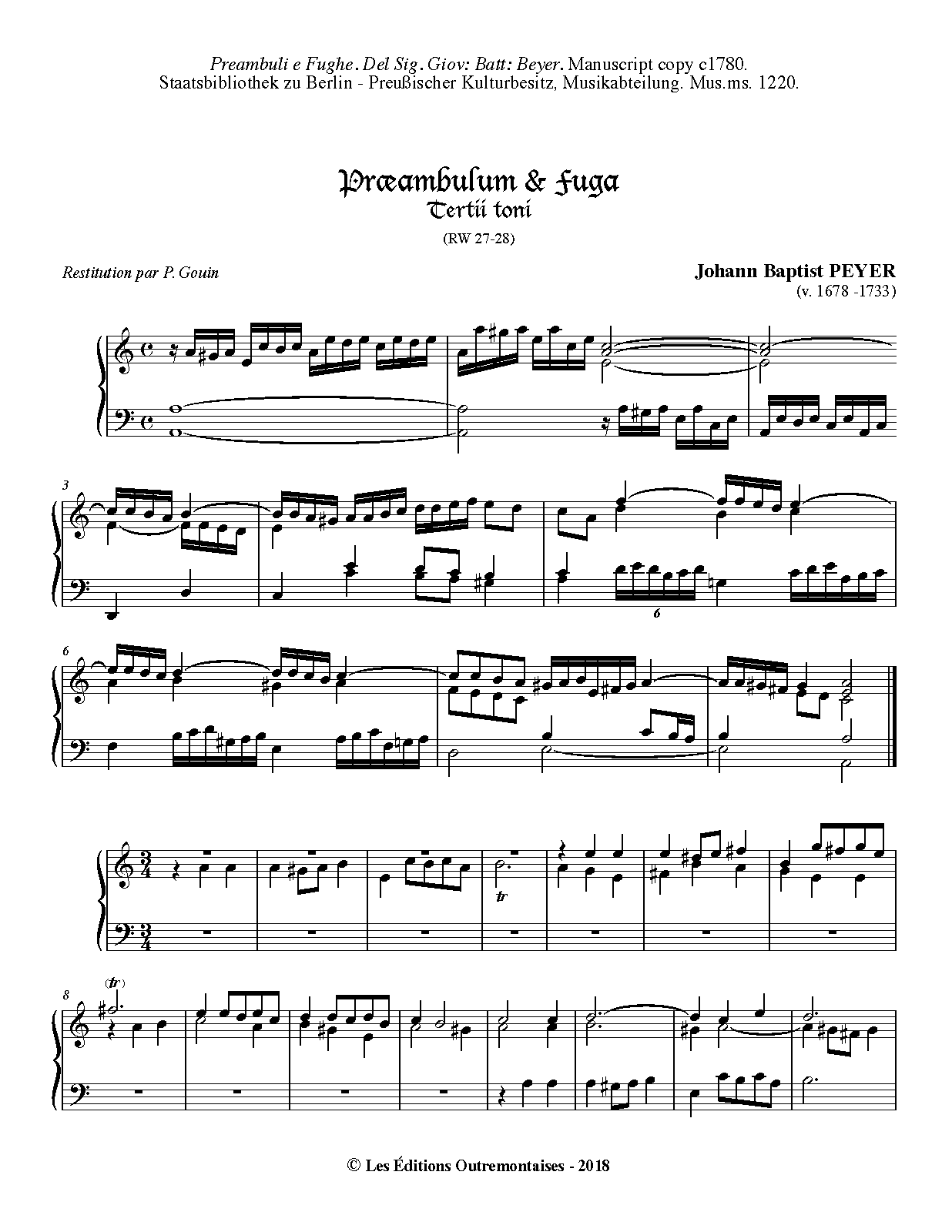 | Extra Information | Nos.27-28 in Peyer volumes: Preambuli e fughe per organo. (1980-81, ed. Rudolf Walter) |