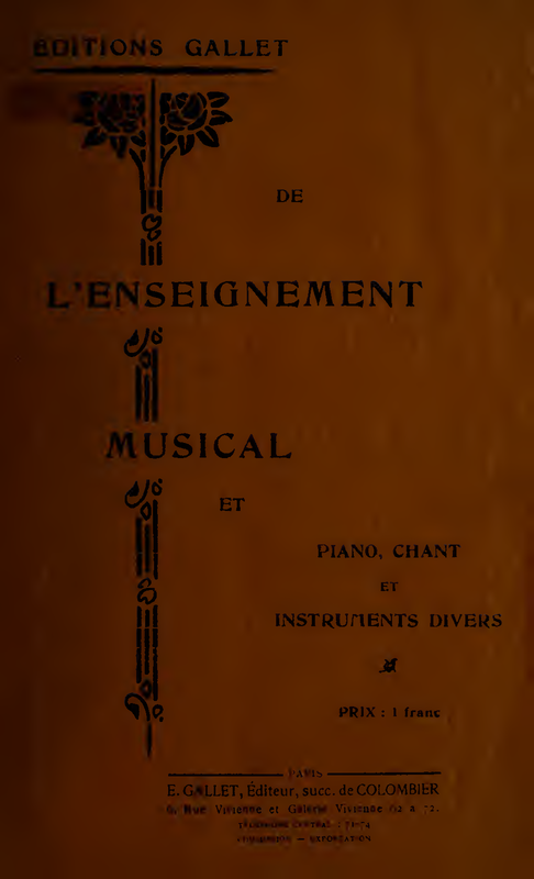 Misc. Notes A catalogue of Gallet publications for education, piano, voice, and various instruments.
