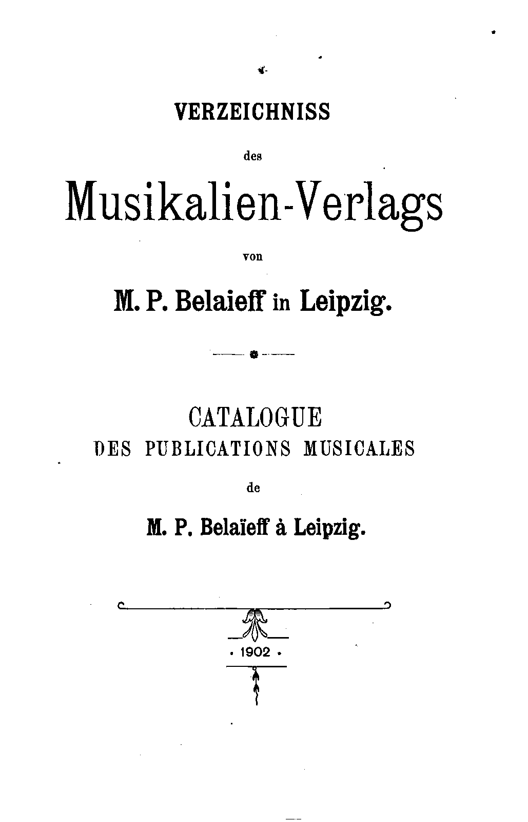 Publisher. Info. Leipzig: M.P. Belaieff, 1902.