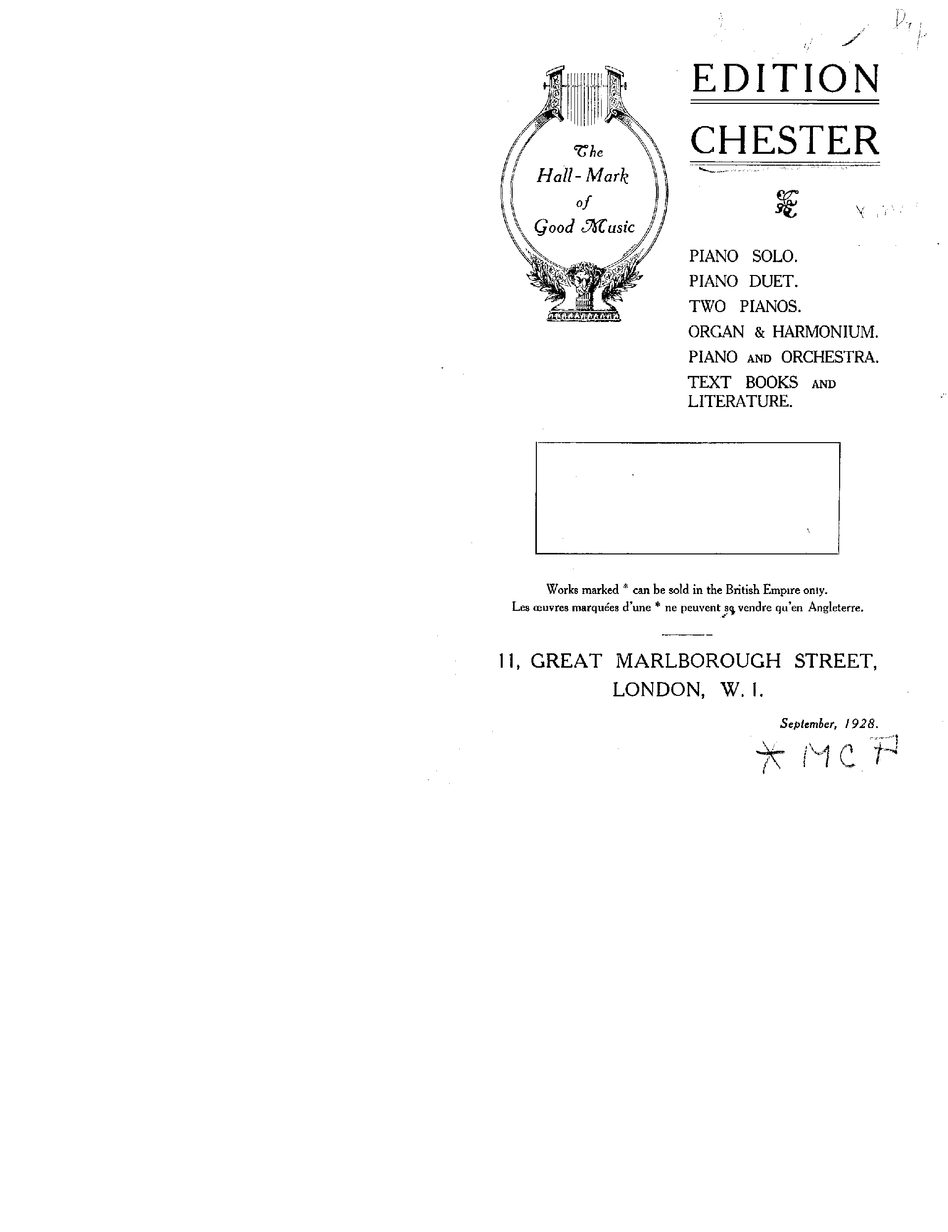 Publisher. Info. London: J. & W. Chester, Ltd., 1928.
