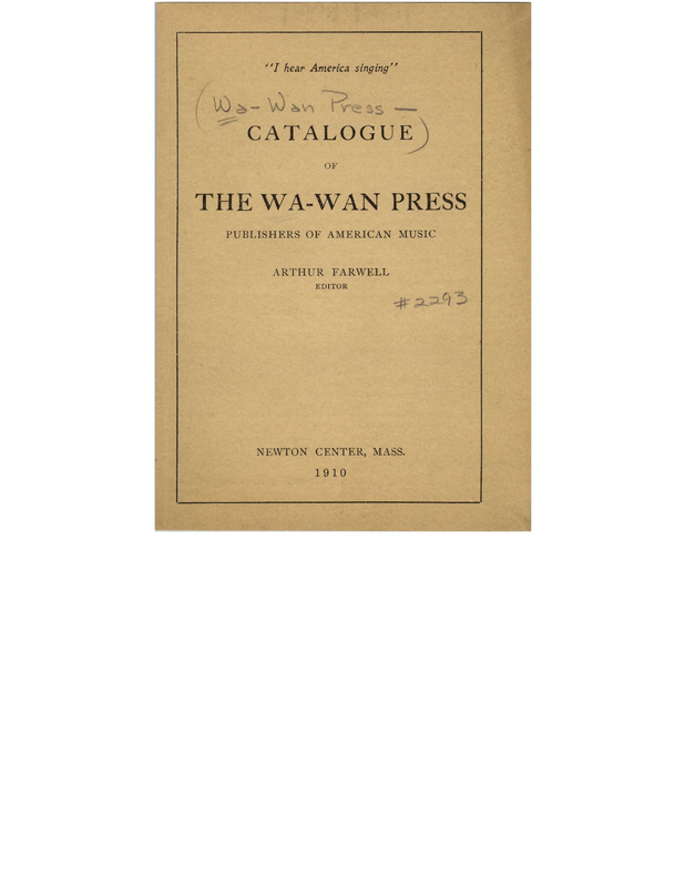 Publisher. Info. Newton Center: The Wa-Wan Press, 1910.