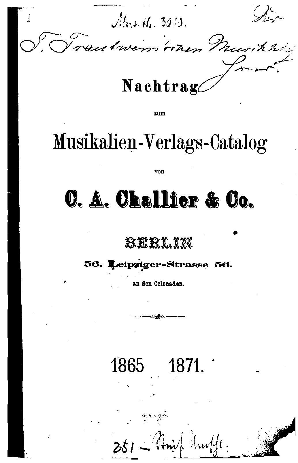 Publisher. Info. Berlin: Challier & Co., n.d.(1871).