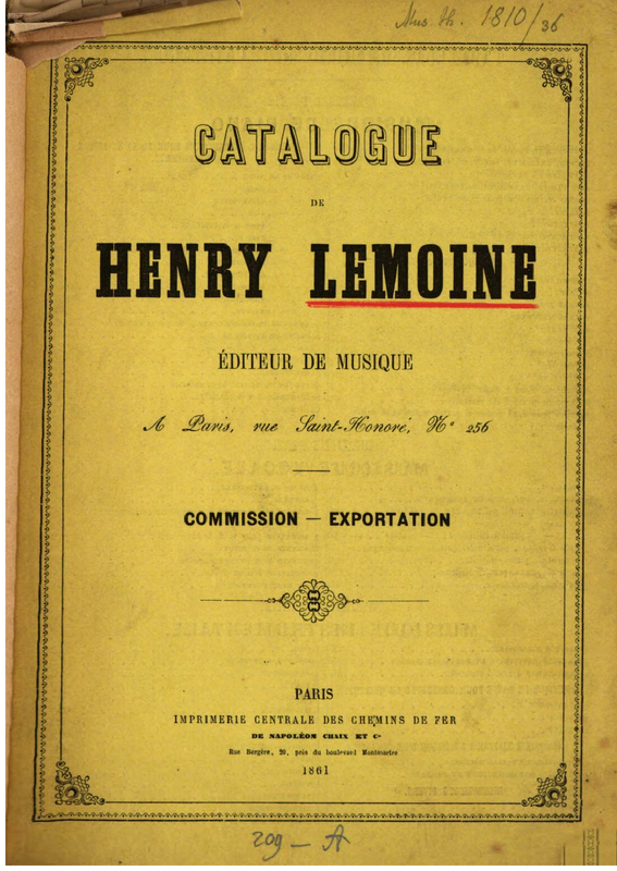 Publisher. Info. Paris: Henry Lemoine, 1861.