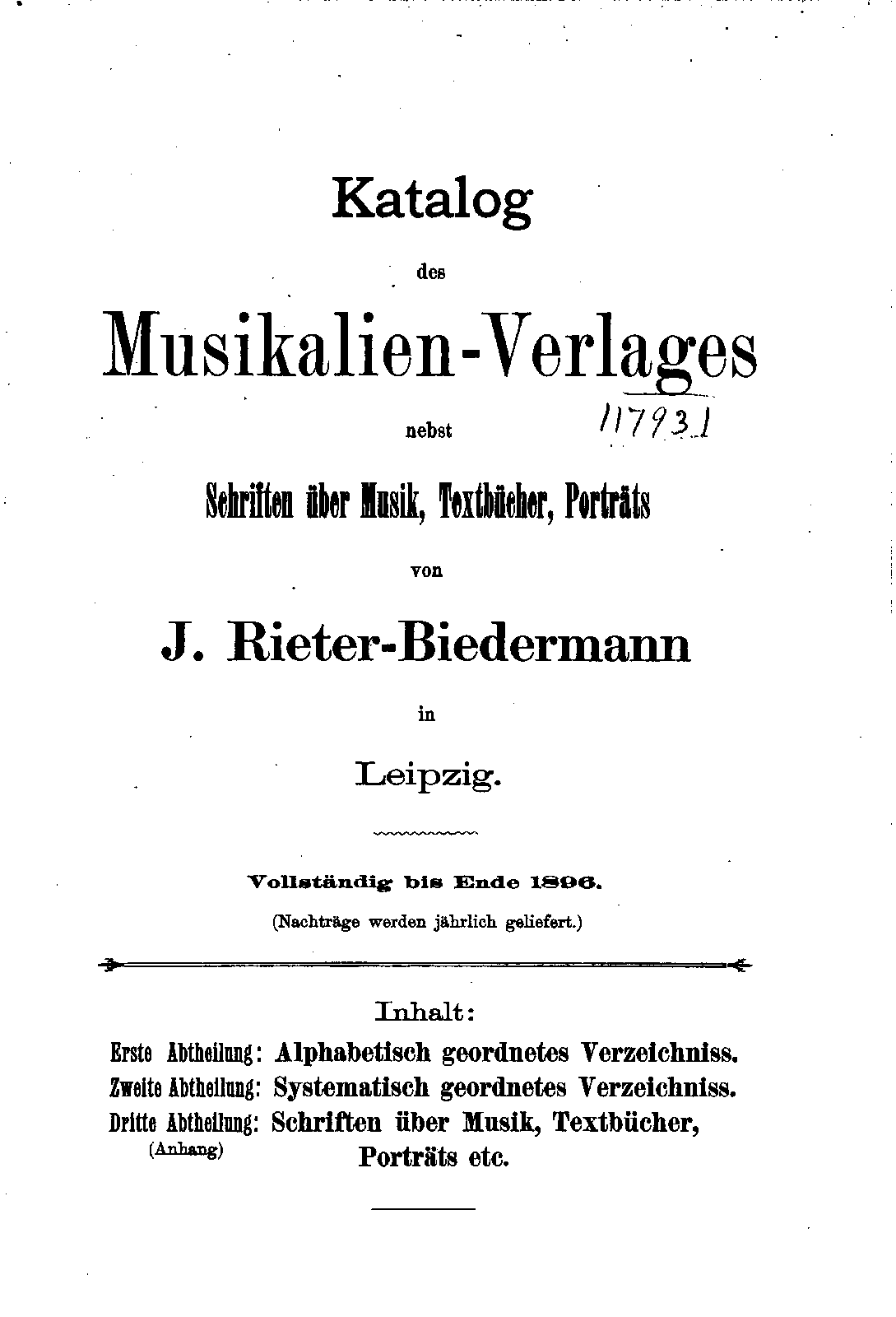 Publisher. Info. Leipzig: J. Rieter-Biedermann, 1897.