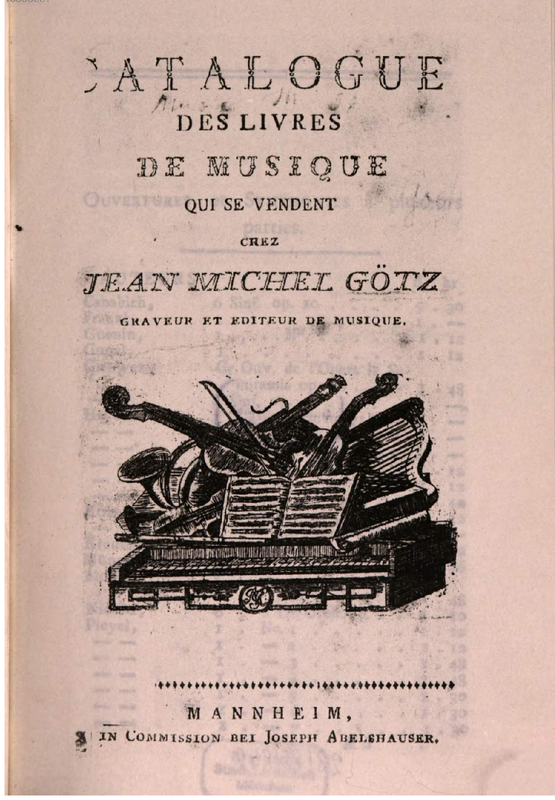 Misc. Notes Catalogue des livres de musique qui se vendent chez Jean Michel Götz graveur et editeur de musique