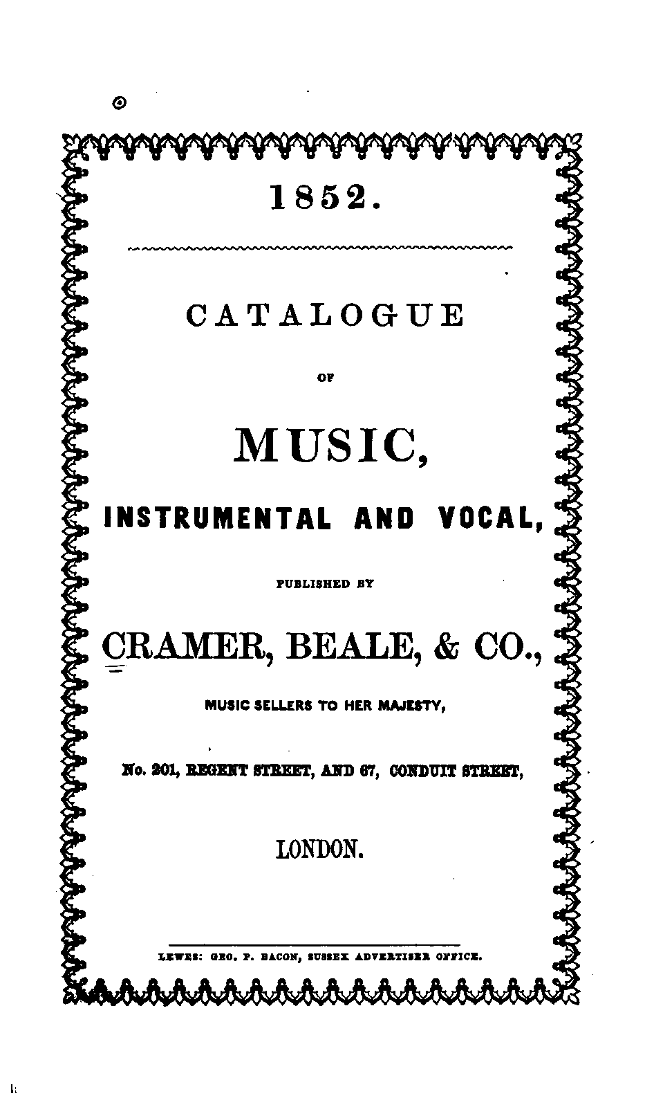 Publisher. Info. Lewes: George P. Bacon, 1852.