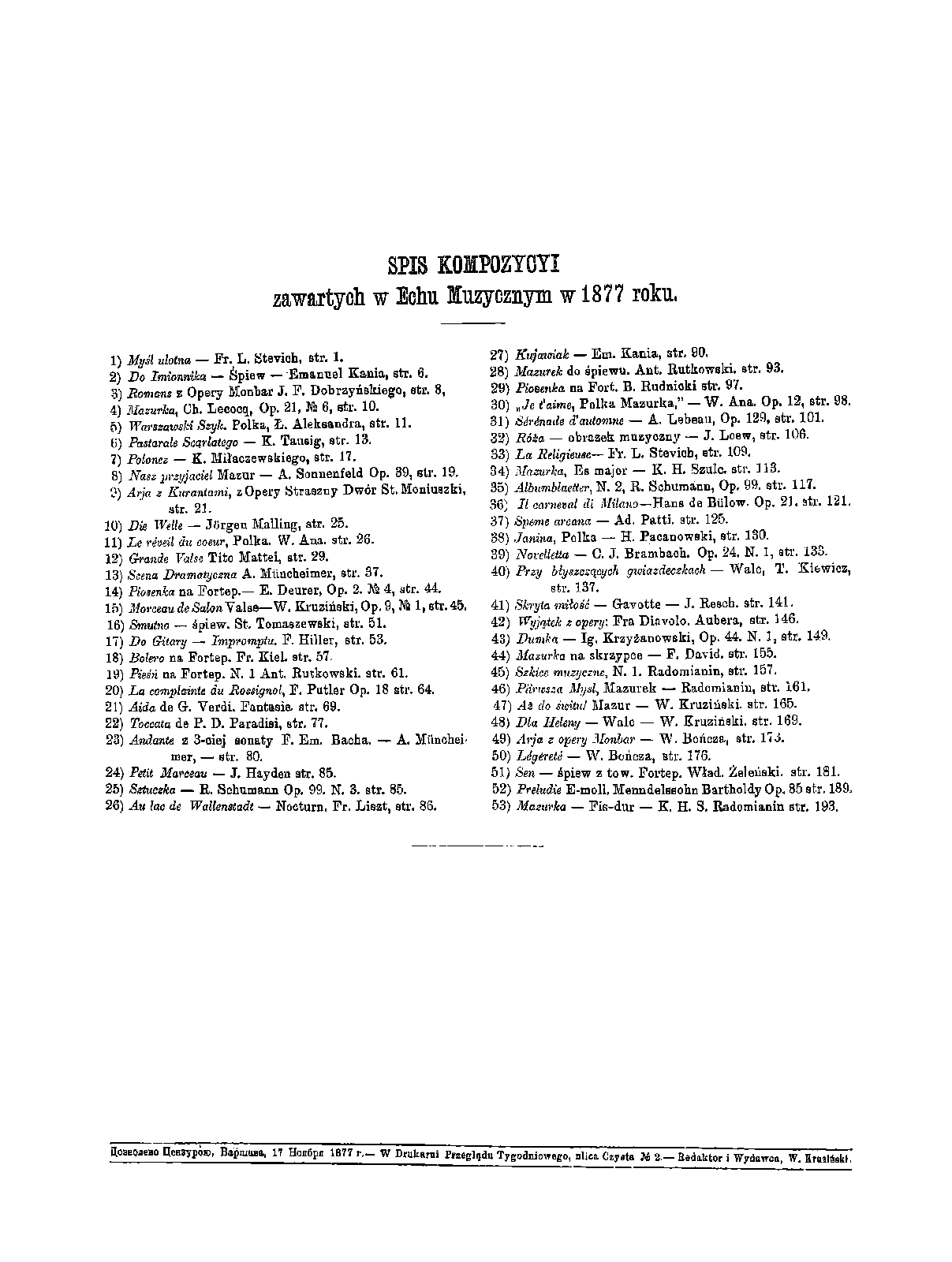 Publisher. Info. Warsaw: Echo Muzyczne, 1877-1903.