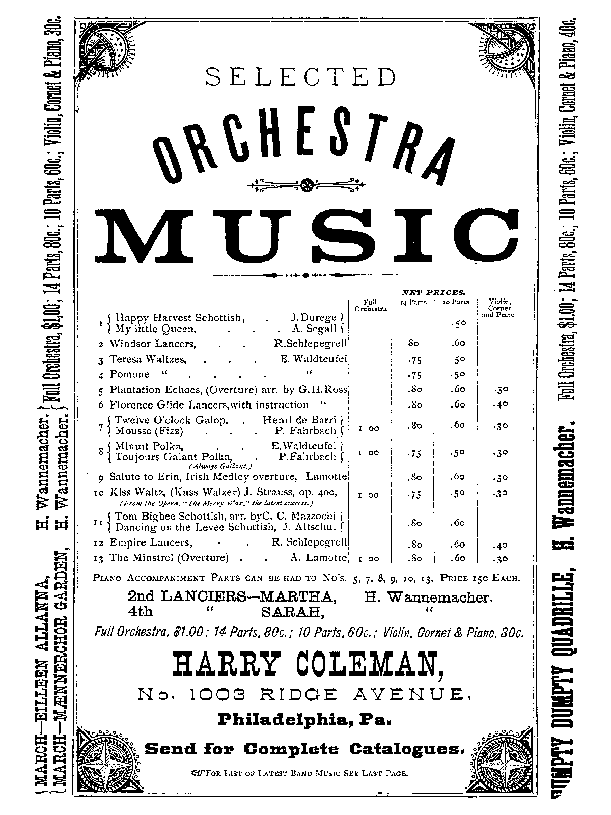 Publisher. Info. Philadelphia: Harry Coleman, n.d. [1882].