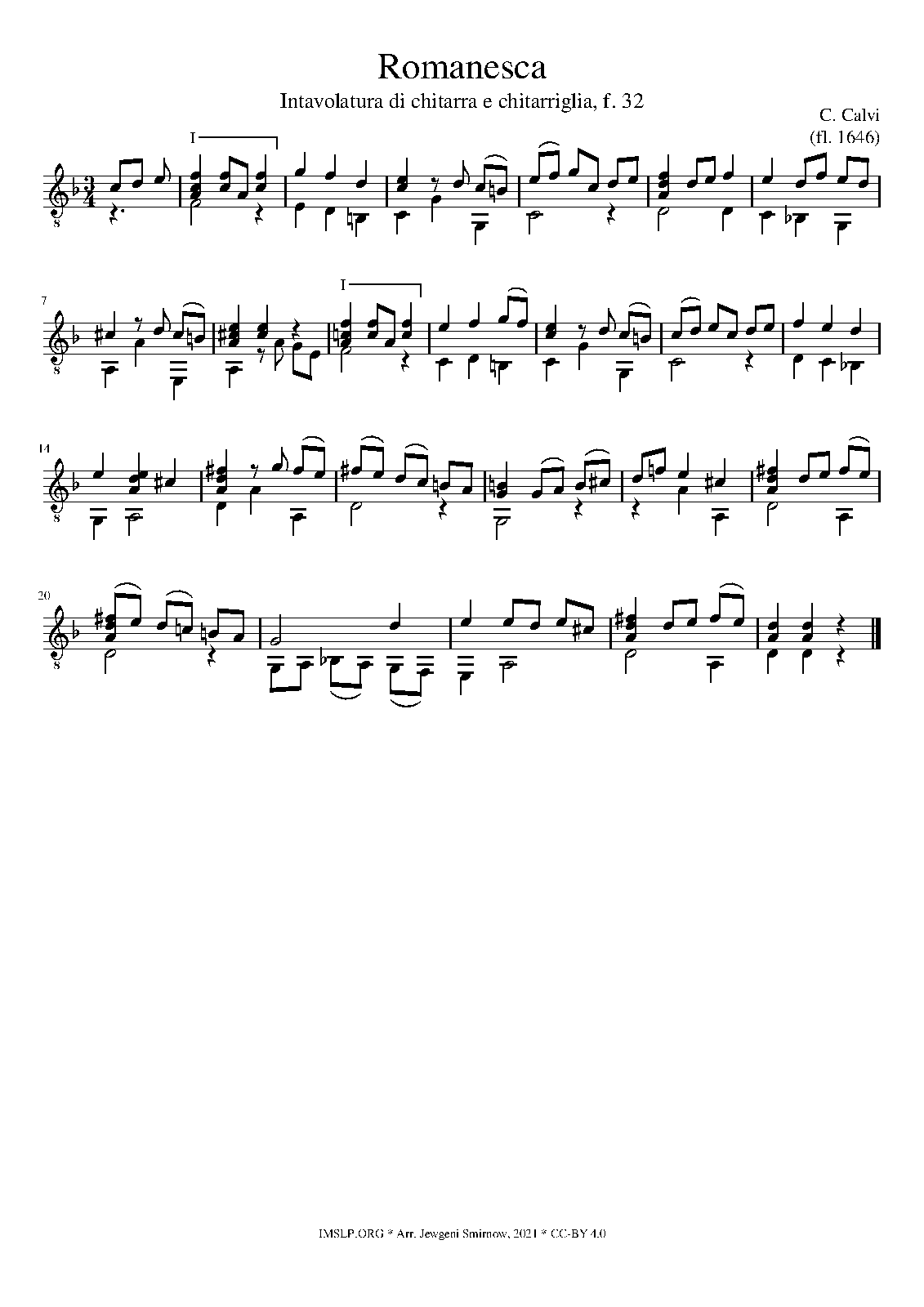 | First Publication | 1646 in Intavolatura di chitarra e chitarriglia (Calvi, Carlo), f.32 |